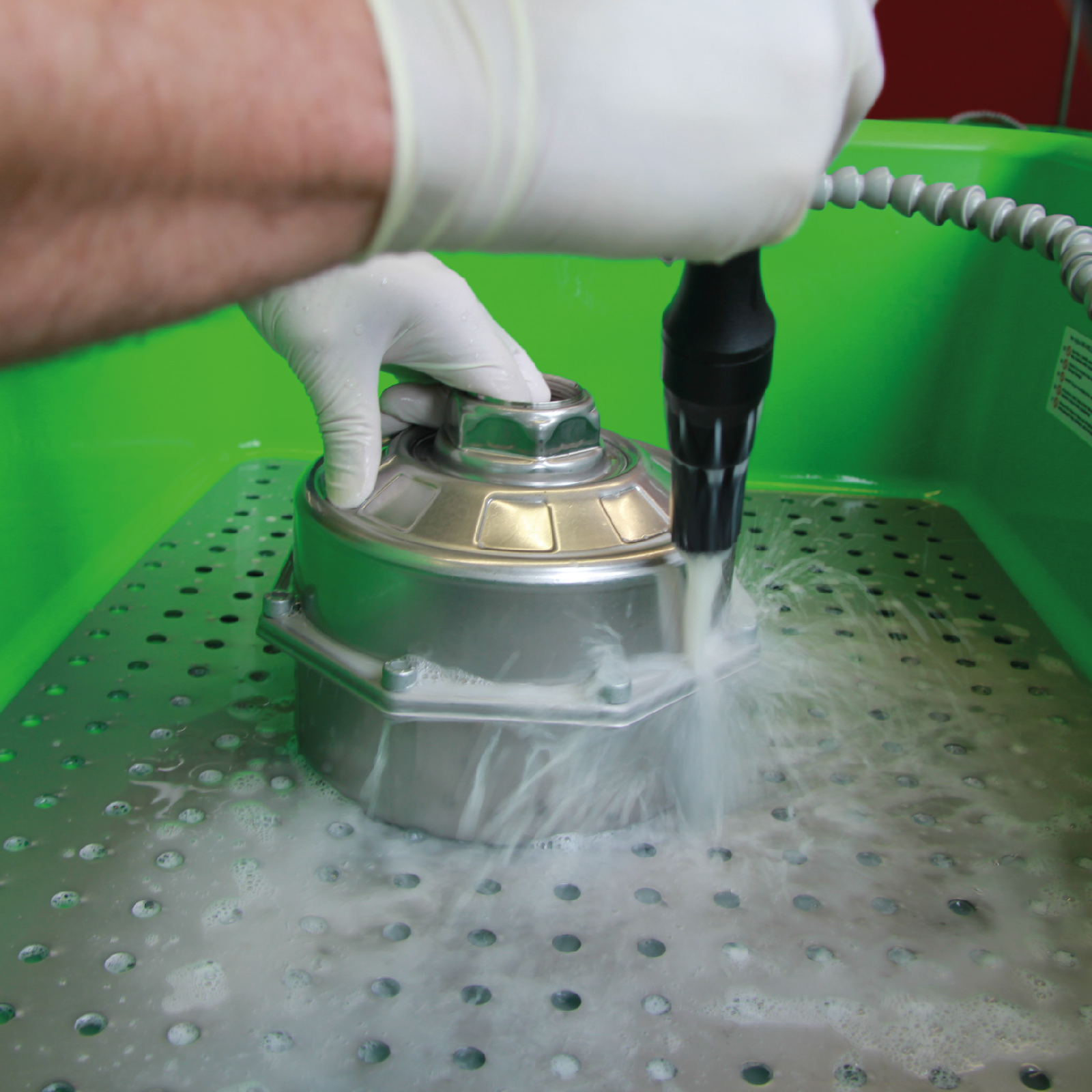 BIO-CIRCLE L (Liquid) is a water-based surfactant cleaning agent that cleans thoroughly and reliably removes oil, grease and particulate dirt from workpieces, including tools. Use in the BIO-CIRCLE parts washer ensures a long service life of the cleaning medium. This is because the washer filters out larger particles and the microorganisms it contains break down the ingressed oils and greases.